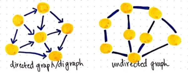 首先我们会探讨一下很容易辨认和理解的两种图:有向图(directed graphs)和无向图(undirected graphs)。这两种图在图论(graph theory)探讨的问题中十分常见。