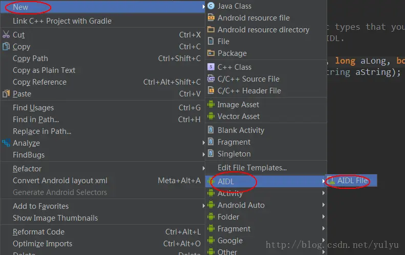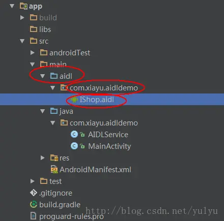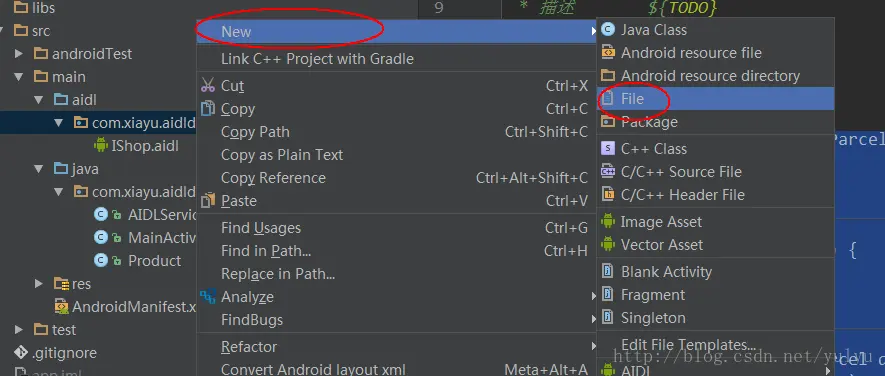 }接着我们需要在aidl文件夹的相同目录创建一个相同文件名的aidl文件