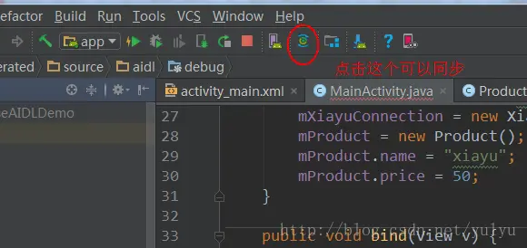(注意:每次修改了AIDI文件后,需要同步一下才会生效,因为每次同步后,Android Studio会在 项目/build/generated/source/aidl/debug 目录下生成相应的java文件)