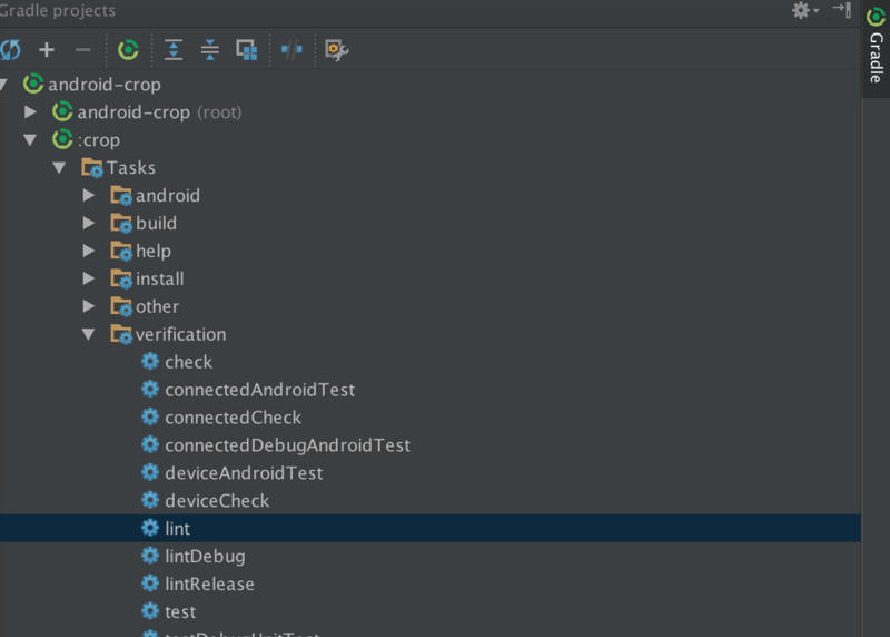 在Android Studio中的右边的菜单栏中可以找到Gradle的工具拦,展看verification,可以到lint的选项: