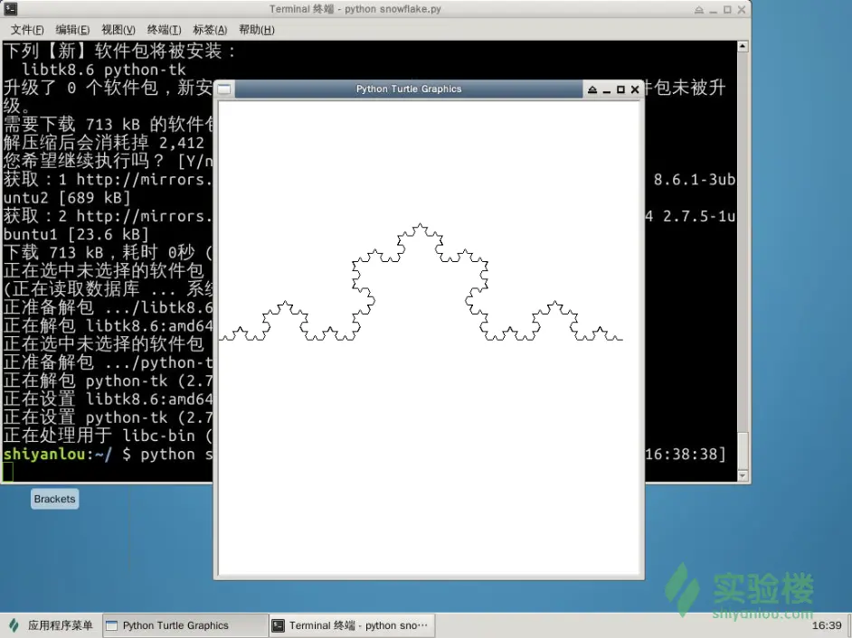 用Python Turtle 模块,通过画出分形树(Fractal tree),科赫雪花曲线(Koch snowflake)和龙形曲线(Dragon curve)这三种曲线来加强对递归的认识。