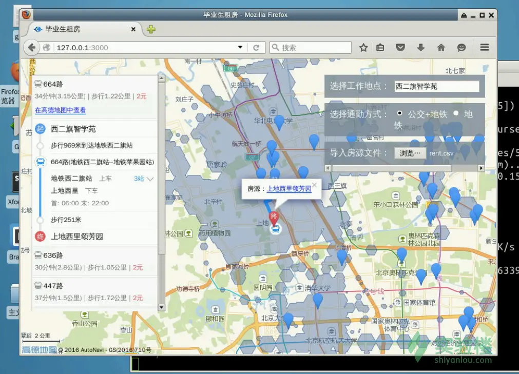 使用Python脚本爬取某租房网站的房源信息,利用高德的 js API 在地图上标出房源地点,划出距离工作地点1小时内可到达的范围。在项目实现的过程中熟悉了requests、BeautifulSoup、csv等库的简单使用。