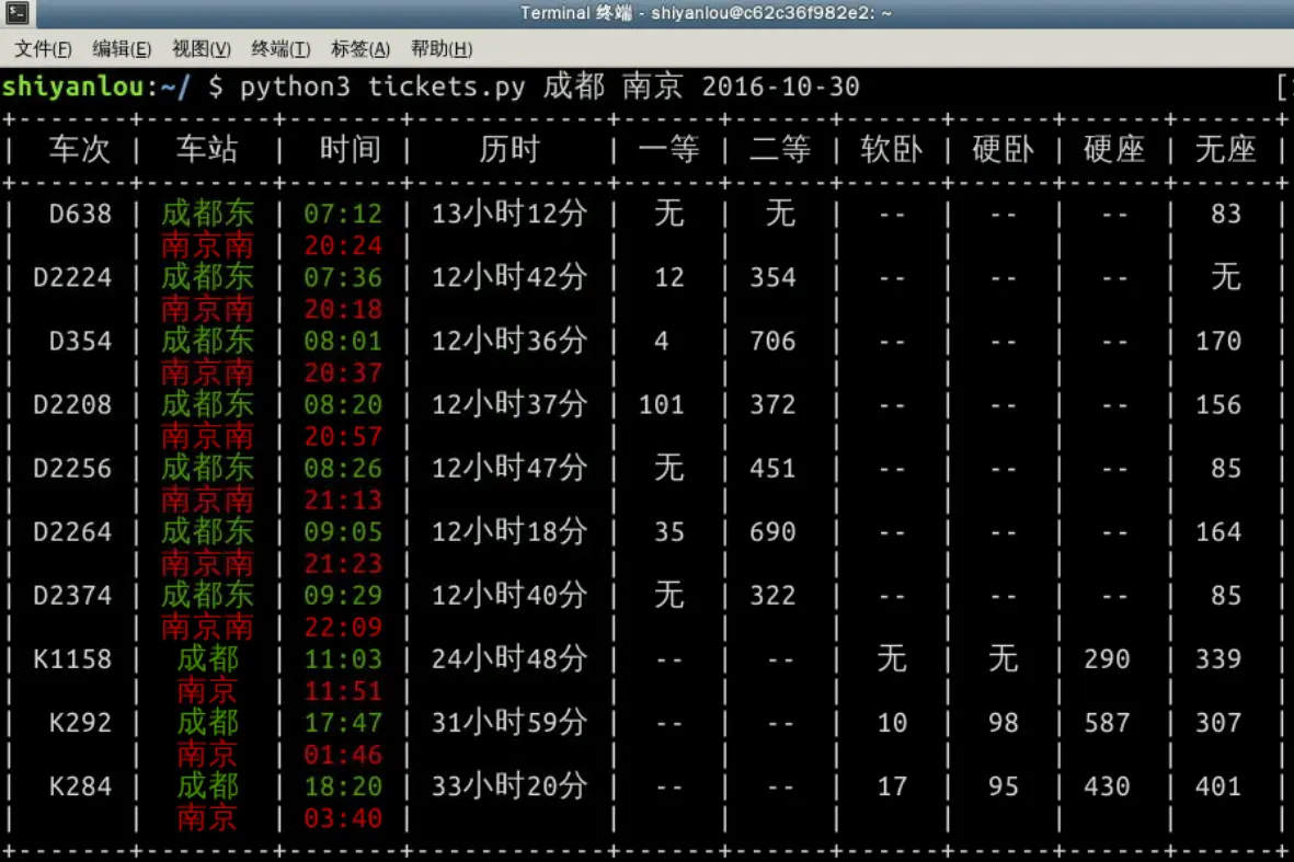 【Python3 实现火车票查询工具】