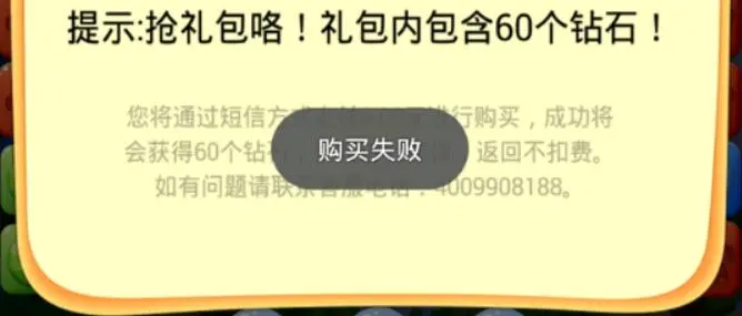 我们点击“领取”之后,会弹出“支付中,等待支付结果”。如果你是用模拟器玩的,过一会儿会弹出“购买失败”: