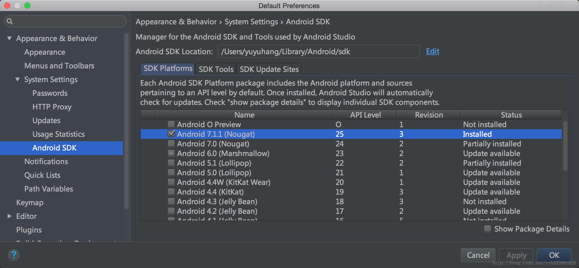 在主module下,修改 build.grade,使其使用 android-25 的 API 编译,当然,未下载的,就需要打开Android SDK Manager下载一下。