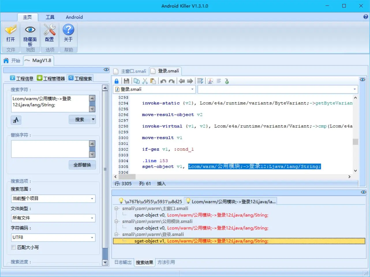 我们搜索Lcom/warm/公用模块;->登录12:Ljava/lang/String;: