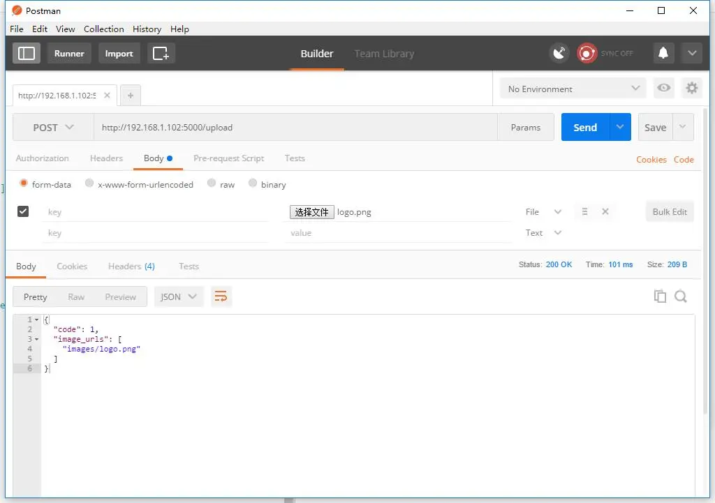 app.run("192.168.1.102",debug=True)这里有一个小技巧,写完Server端代码后可以使用Postman进行测试,测试成功后再进行客户端程序开发。