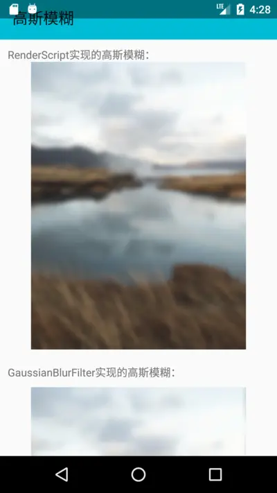 }在Android上实现高斯模糊也可以使用原生的API-----RenderScript,不过需要Android的API是17以上,也就是Android 4.2版本。
