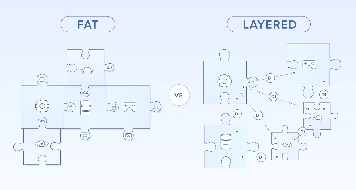 “臃肿的”PHP MVC应用随处都有依赖,错综复杂且容易出错,而分层结构则使用依赖注入保持干净和清晰。