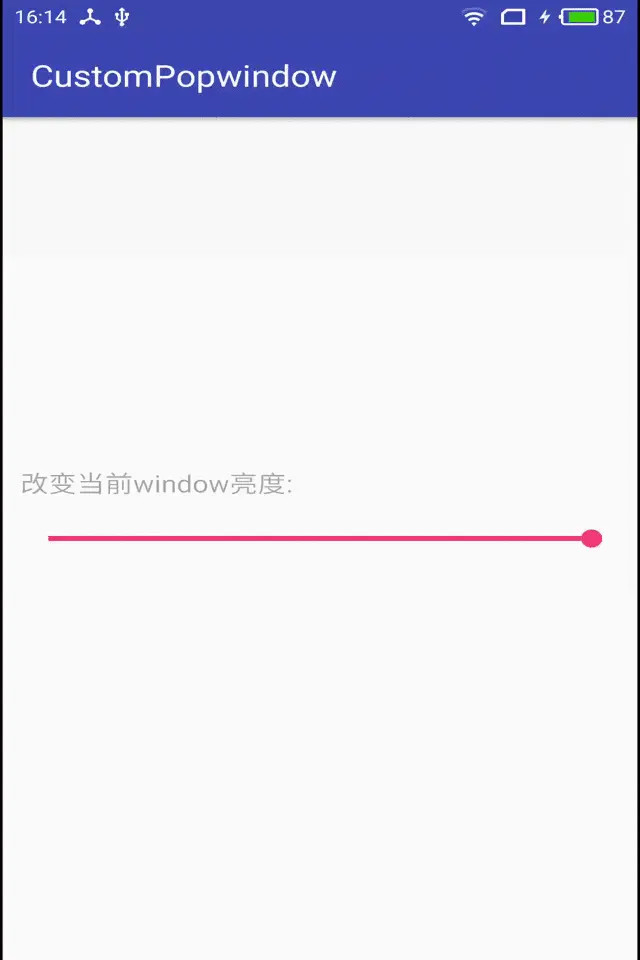 看到没?随着拖动seekBar,屏幕的亮度就跟着改变了,这不就是我们想要的效果嘛。