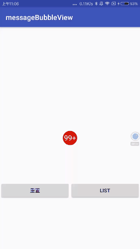 注意:使用时需要在父布局中加入android:clipChildren="false"属性,使气泡在可以在父布局中拖动。如一个界面中由一个RelativeLayout中包含一个Recyclerview组成,则需要在Recyclerview的Item布局中、Recyclerview、RelativeLayout中都加入该属性。