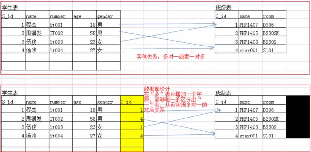 一个学生只属于一个教室,一个教室却包含多个学生。这种关系就称之为多对一或者一对多的关系