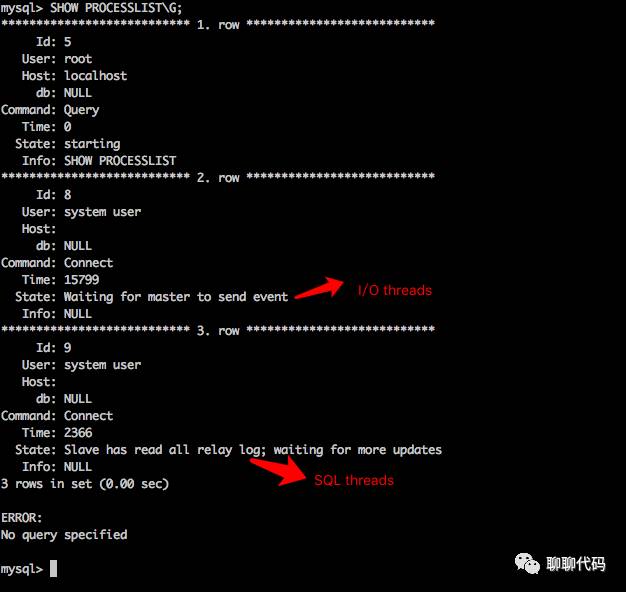 如图,在slave机器上查看I/O、SQL线程。
