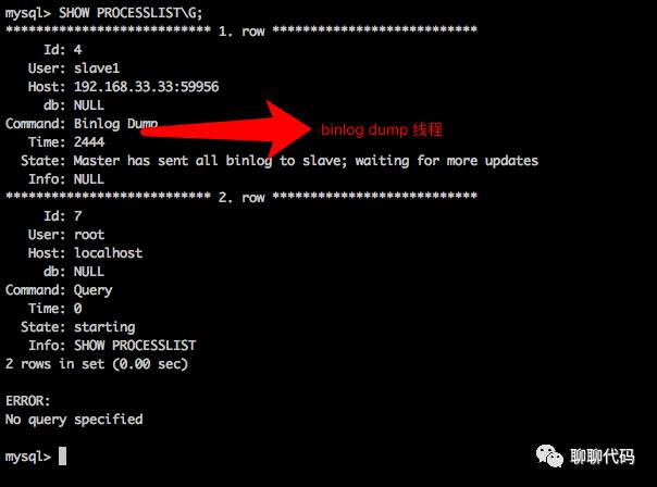 如图,在master机器上查看binlog dump线程。