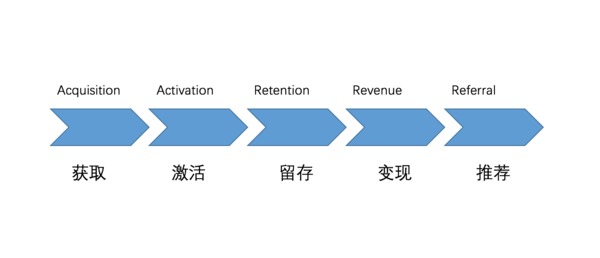 获取(Acuisition) -> 激活(Activation) -> 留存(Retention) -> 变现(Revenue) -> 推荐(Referral)