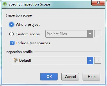 Android Lint功能十分强大,这里我们只关注XML布局检查,我们可以通过Android Studio的Analyze->Inspect Code来配置检查的范围,如下图所示。