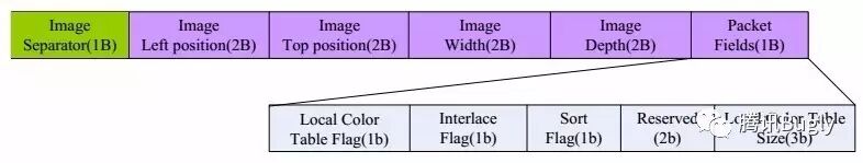 除了上面说过的字段之外,还多了一个Interlace Flag,表示帧点阵的存储方式,有两种,顺序和隔行交错,为 1 时表示图像数据是以隔行方式存放的。最初 GIF 标准设置此标志的目的是考虑到通信设备间传输速度不理想情况下,用这种方式存放和显示图像,就可以在图像显示完成之前看到这幅图像的概貌,慢慢的变清晰,而不觉得显示时间过长。