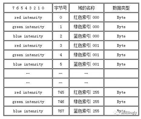 点阵数据(它存储的不是颜色值,而是颜色索引)