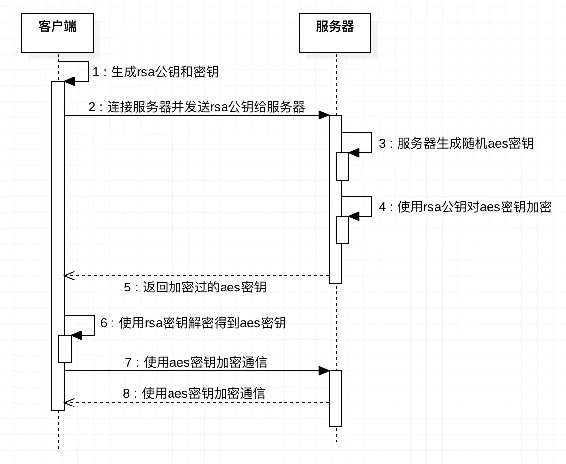 - 之后客户端与服务端的数据传输都使用aes密钥进行加密/解密。
