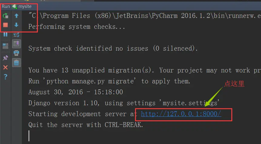 命令行的方式是:python manage.py runserver 127.0.0.1:8000