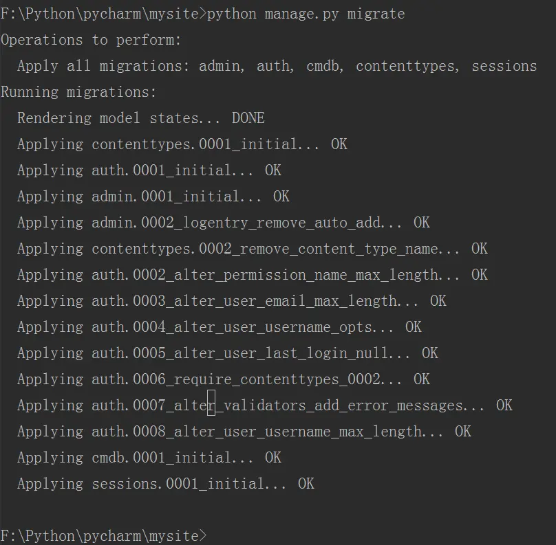 再输入命令:python manage.py migrate