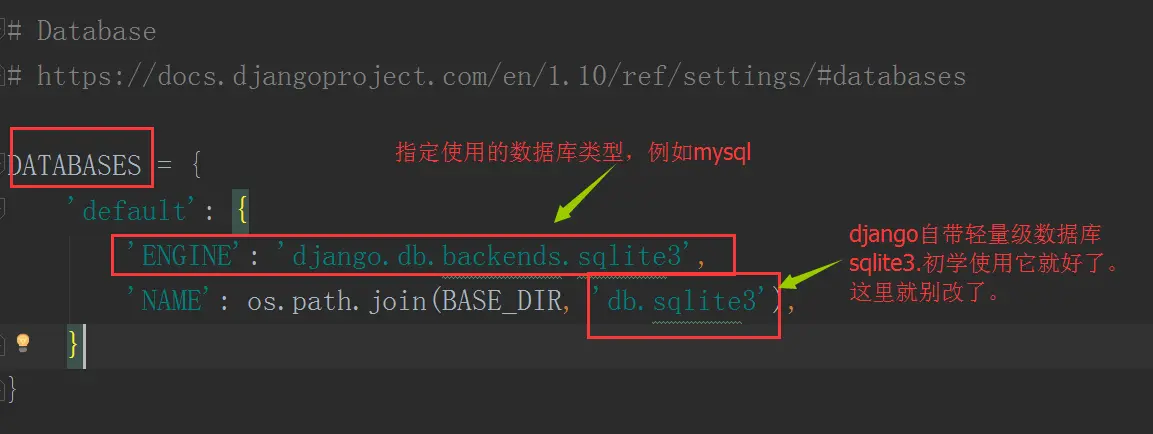 然后我们在settings中,配置数据库相关的参数,如果使用自带的sqlite,不需要修改。