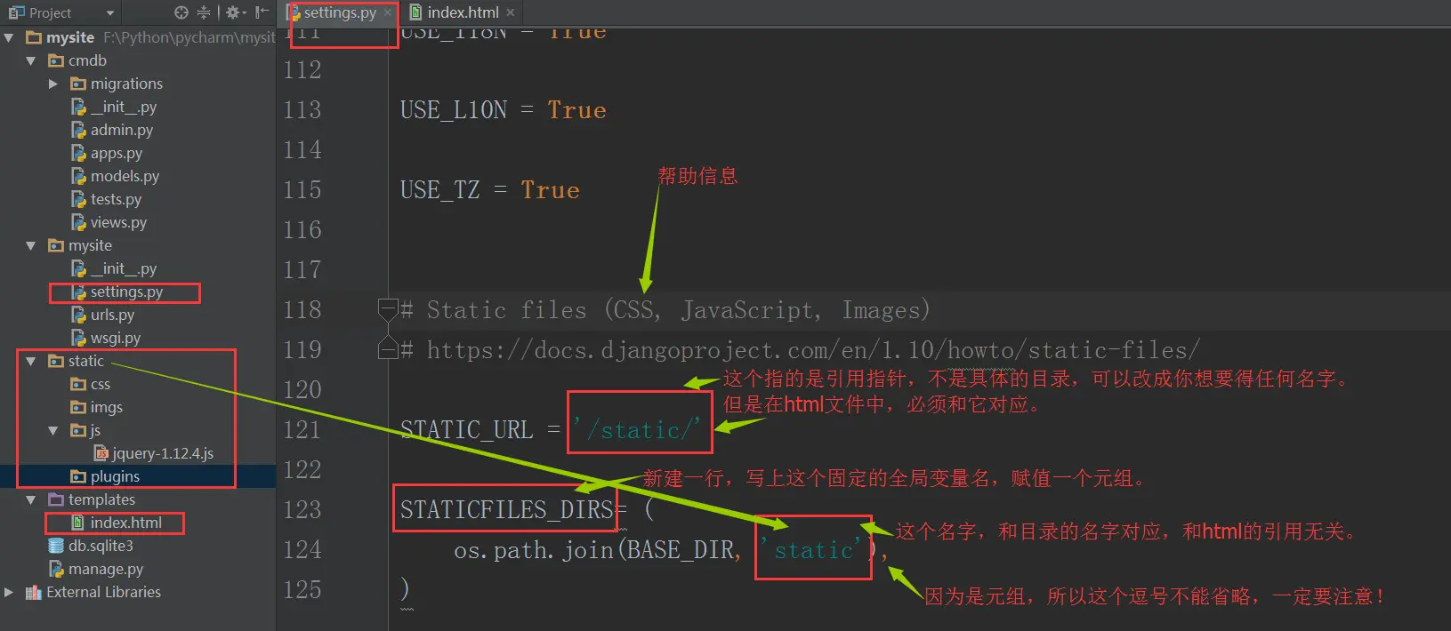 为了让django找到这个目录,依然需要对settings进行配置: