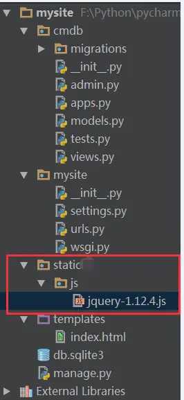 的页面。在django中,一般将静态文件放在static目录中。接下来,在mysite中新建个static目录。