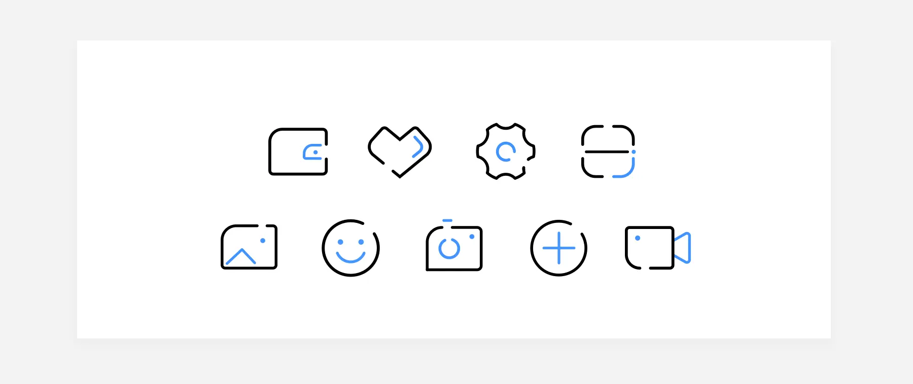 图标采用了断点、双色的视觉风格,虽然图标风格有所参考,但是对于输入框部分使用这样风格的图标,也算是我的一次大胆尝试,算是本次设计的一个亮点,如下图:
