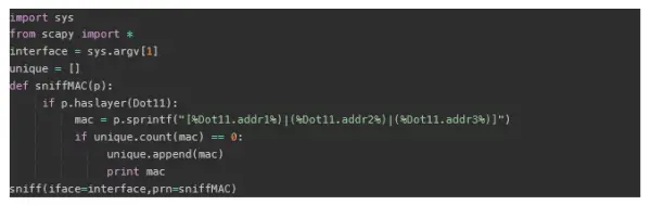if p.haslayer(Dot11Beacon): if unique.count(p.addr2) == 0: