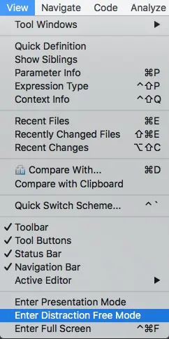 步骤:View → Enter Distraction Free Mode