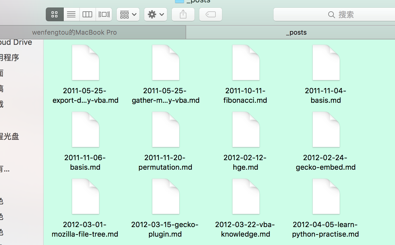 2.github page写文章可不太方便,不能直接在网页上写文章,要通过上传md文件的方式写文章。就像下面这样,一个md文件就是一篇文章。文章格式要符合markdown的格式啦。