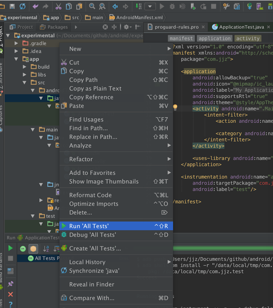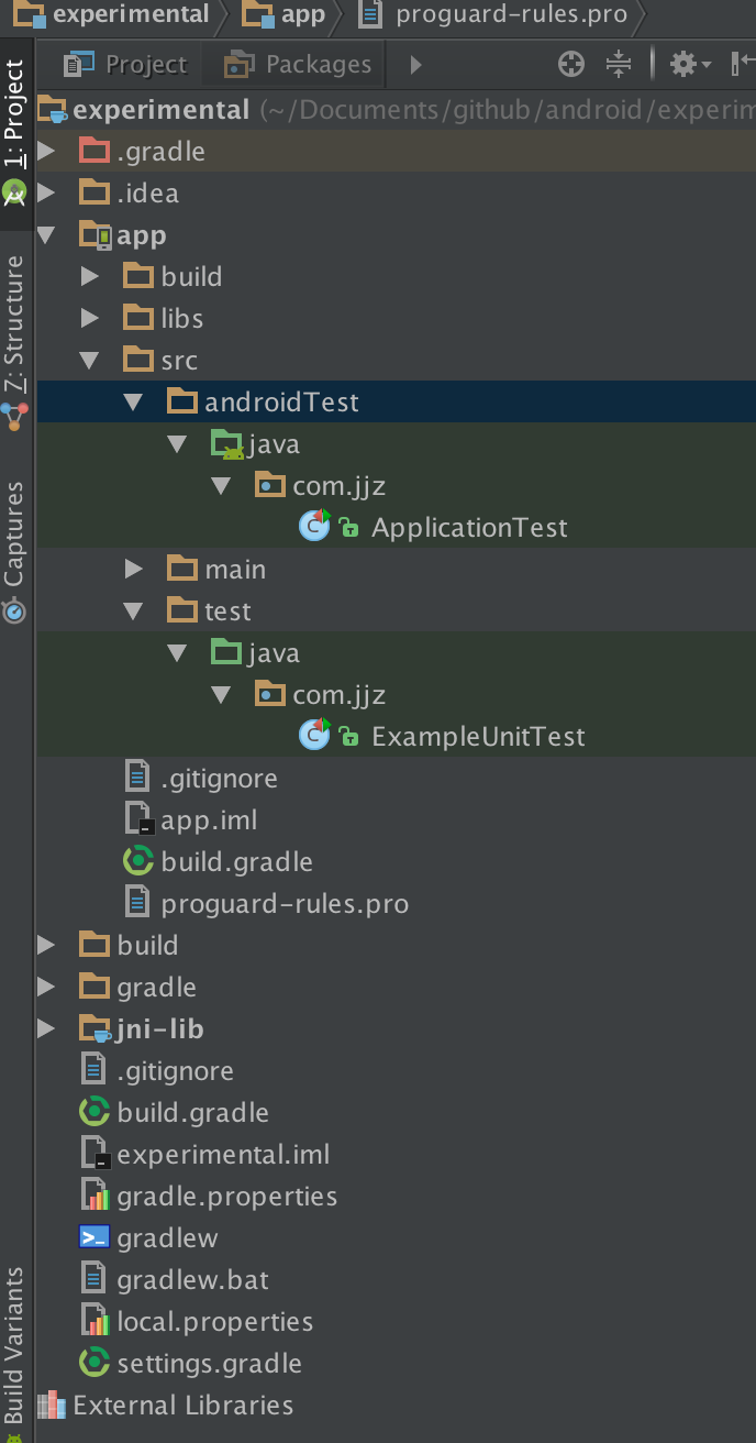 首先先看下单元测试文件是什么位置,下面是一个Android项目的基本结构: