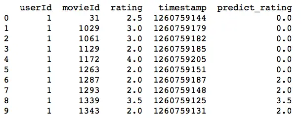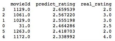 score_df = pd.DataFrame(columns=['movieId','predict_rating', 'real_rating'])