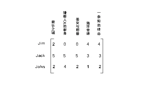 是的,它果然和数据库里的没两样,上篇我们介绍的一般评分估计也好,神奇的SVD评分估计也好,前提都是有一个长成下面这样的物品-用户矩阵