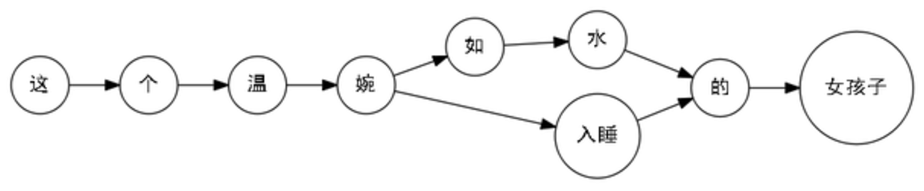 这里我们介绍一下词图(lattice),词图本质上是一个有向无环(directed acyclic graph)图。每个词网格包含一个开始结点以及一个结束结点,即在每个词网格中,仅存在一个入度(in-degree)为0的节点和一个出度(out-degree)为0的节点。我们也一般采用词图来保存识别的候选序列。