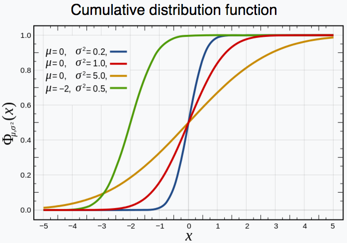 正态分布的累积分布函数如下图所示,与前面提过的Sigmoid函数类似: