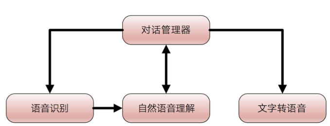 一个语音对话系统一般包含四个主要组成部分中的一个或多个:语音识别系统将语音转化为文本、语义理解系统提取用户说话的语义信息、文字转语音系统将内容转化为语音、对话管理系统连接其他三个系统并完成与实际应用场景的沟通。如下图: