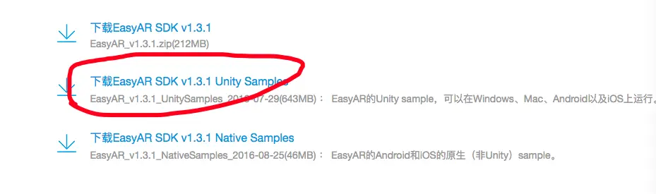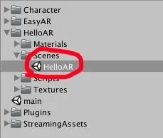 我们在EasyAR 的HelloAR 的基础上进行开发,到官网下载EasyAR SDK v1.3.1 Unity Samples,并注册好key后,在unity中打开HelloAR 这个项目。
