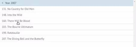 点击列表的任一项,就会列出相应年份的电影。列表的最上面一行提供了返回上一页面的功能,该行的展示效果取决于templateBack属性: