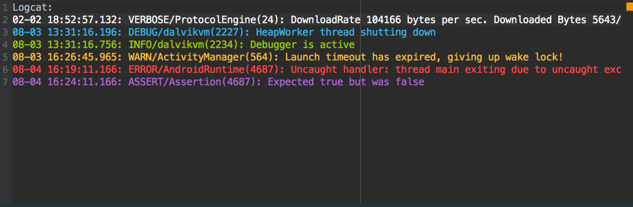 前面介绍了几种打造Android Studio 花式炫酷主题的方式,效果已经非常赞了,但是我们看一下我们的Logcat ,只有白色和红色两种Log,看起来有点Low ,与我们炫酷的主题不搭啊,因此我们还得改造一下控制台的Log输出。更改之前的效果如下: