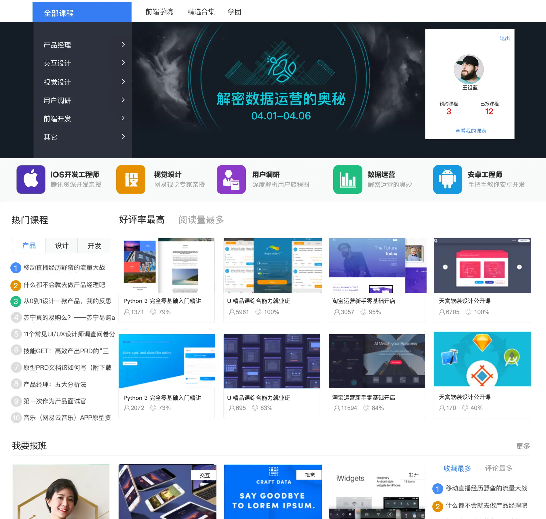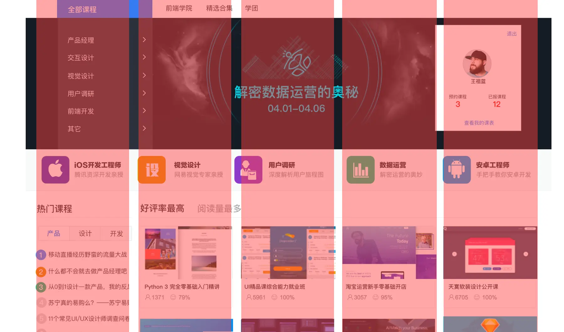 很多需求方希望传递很多内容信息,并且每一个都是重点,最后就会导致用户根本不知道看什么,我们的这个网站就存在这个问题,重点应该是课程的导航,然而个人信息和快捷入口的图标区已经完全抢走的我们的视线。
