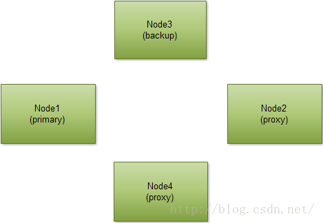 关于源节点、备份节点、代理节点分别代表什么意思,每个集群每个会话只有一个源节点,一个备份节点,若干个代理节点。如下图,node1为源节点,表示会话对象由它创建,保存的是会话对象的原件;node3为备份节点,保存的是会话对象的备份件;node2和node4为代理节点,它们保存的仅仅是会话位置信息,例如备份节点node3的机器的ip。这样分类是为了提供failover能力,