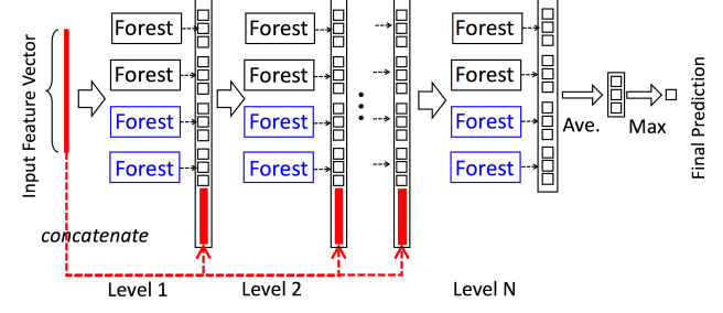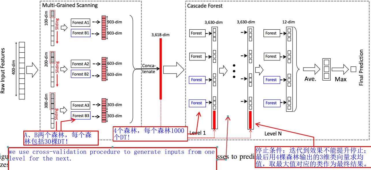 gcForest的核心主要包括两大块:级联森林(Cascade Forest)和多粒度扫描(Multi-Grained Scanning)。