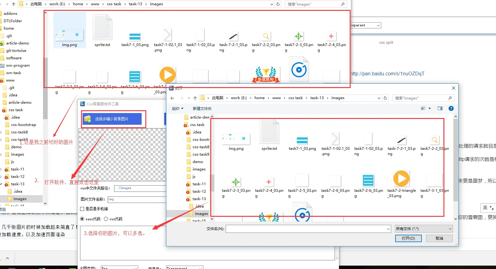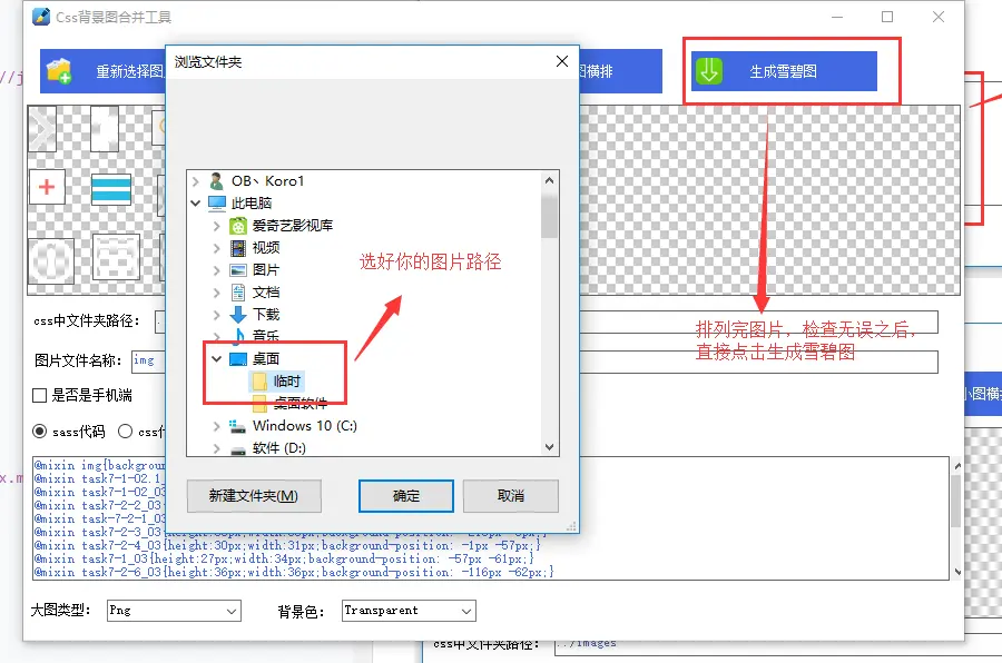 保存雪碧图-css代码(因为软件没有到导出css代码的功能,所以要自己新建一个txt文件,放在雪碧图旁边,以后打开txt就知道图片在雪碧图的位置。)