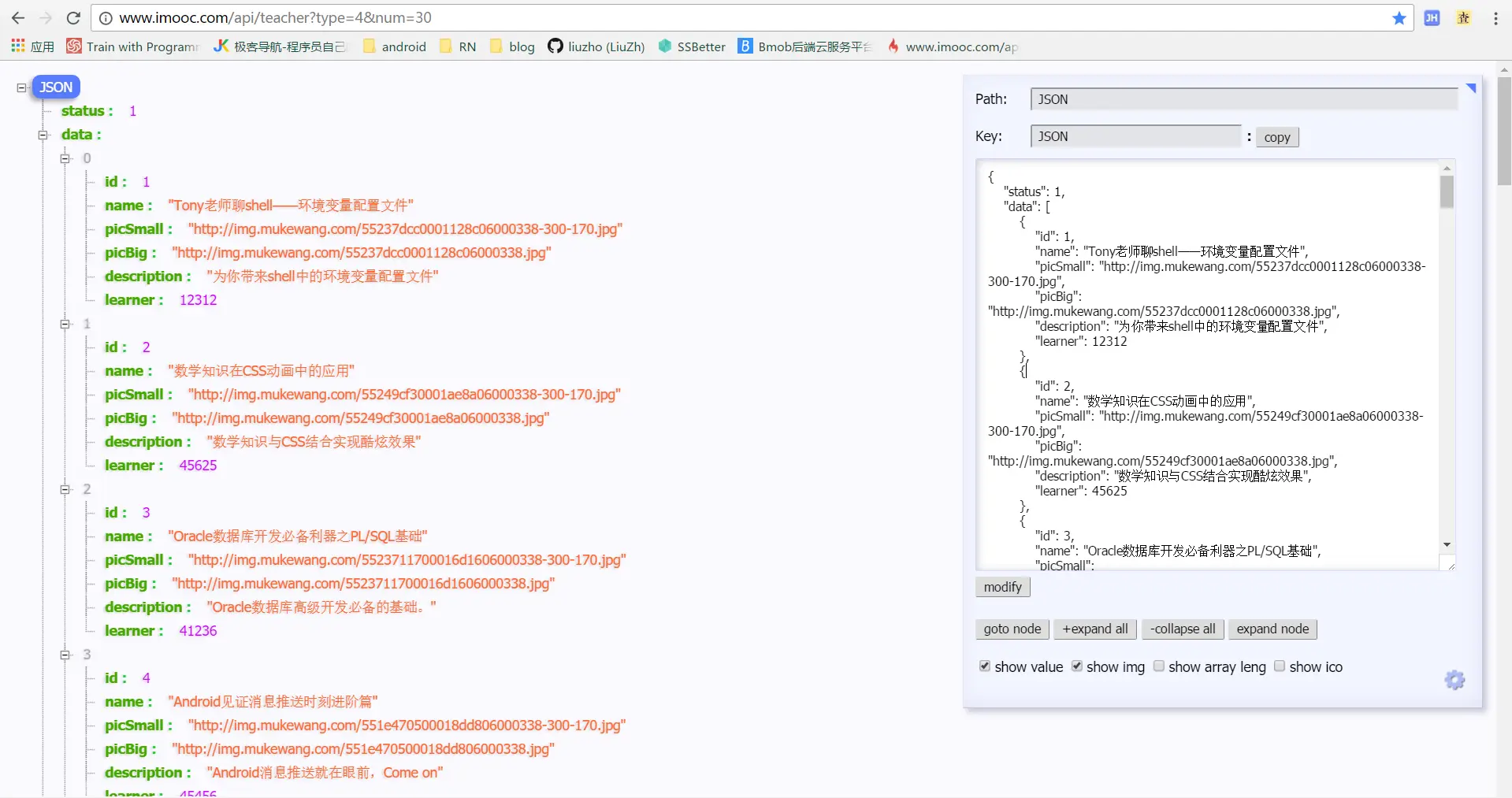 我使用的是chrome浏览器,通过插件“JSON-handle”将json格式化并展示了出来,很友好的效果,其他浏览器也有类似插件,可自行搞定