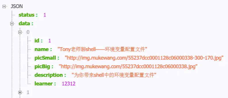 果然是好长一段的json!我们需要的内容在json>data中,对比预览图得知需要的数据段为:name、picSmall(当然用小图啦)、description三个。