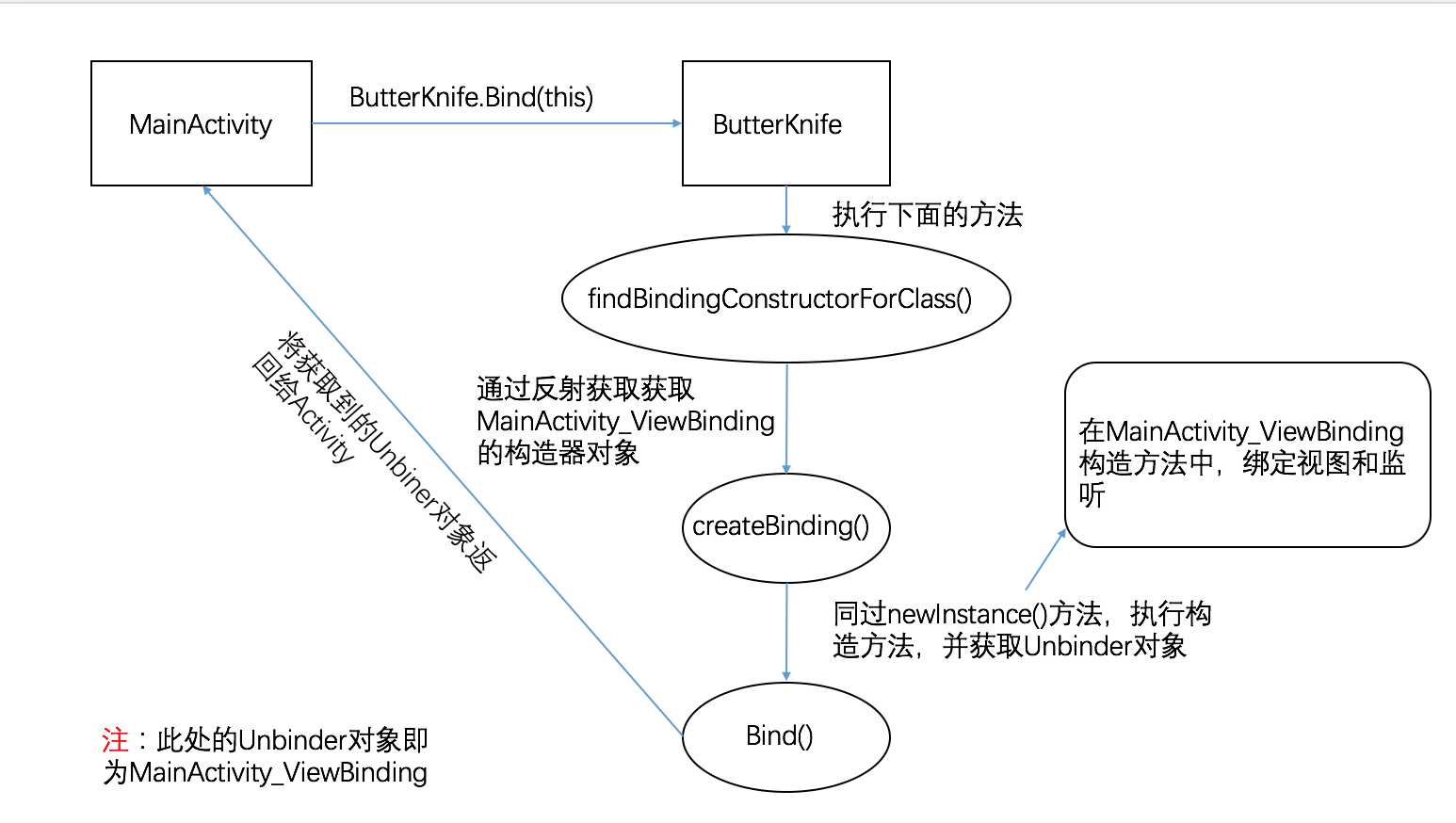 在findBindingConstructorForClass()方法中通过反射获取了MainActivity_ViewBinding类的Class对象,再获取它的Constructor对象并强转成Constructor<? extends Unbinder>类型最后返回,这里需要一定的反射和泛型的知识。