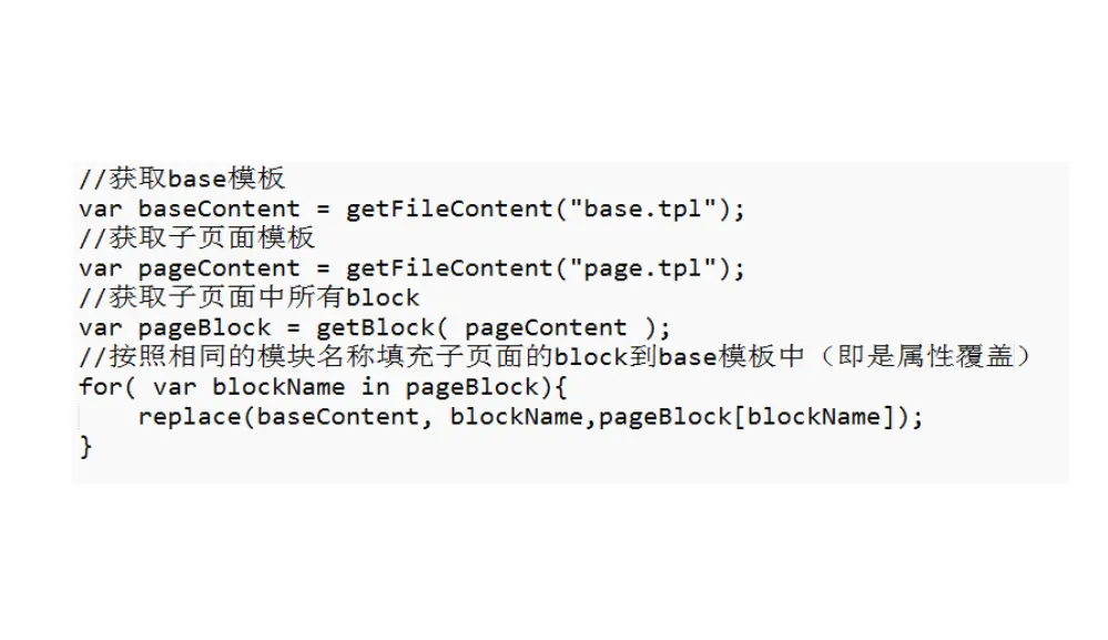 对于这些我们相信到这很多同学会产生疑问,html不像动态语言,具有inline以及继承功能,怎么样才能达到上述功能,实现原理很简单,借助构建工具在编译的过程中遍历所有HTML文档,找出所有的基类,然后读取所有的子类,把子类的属性覆盖到父类便可,伪代码如下图: