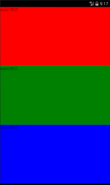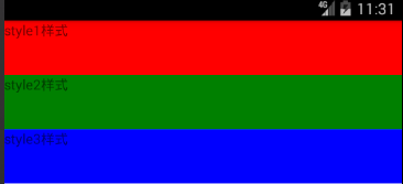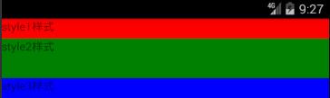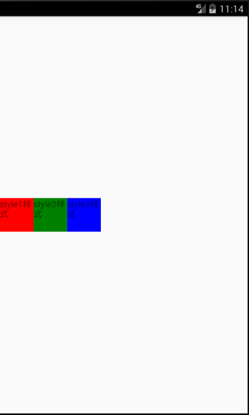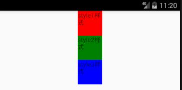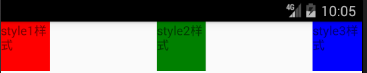 但是设置成width:100时,style1,style2,style3也是无法显示的,因为此时布局方向默认为垂直方向,需要更改布局方向后才能生效,下面会说如何更改屏幕的布局方向。